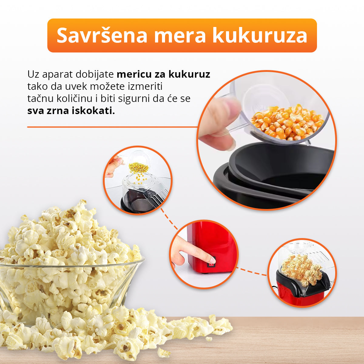 Uvek savršena mera kukuruza: Uz aparat dobijate mericu za kukuruz tako da uvek možete izmeriti tačnu količinu i biti sigurni da će se sva zrna iskokati.