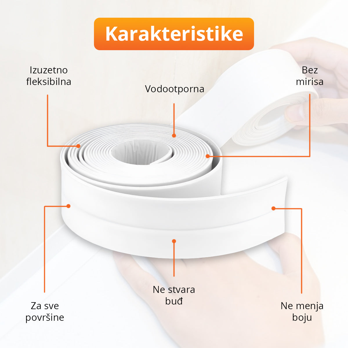 Kada se lepak trake osuši nakon postavljanja voda ga više ne može odlepiti i mesto na koje ste je zalepili postaje potpuno zaštićeno. Zbog toga je odlična za upotrebu oko kade, lavaboa, tuš kabine ili sudopera.