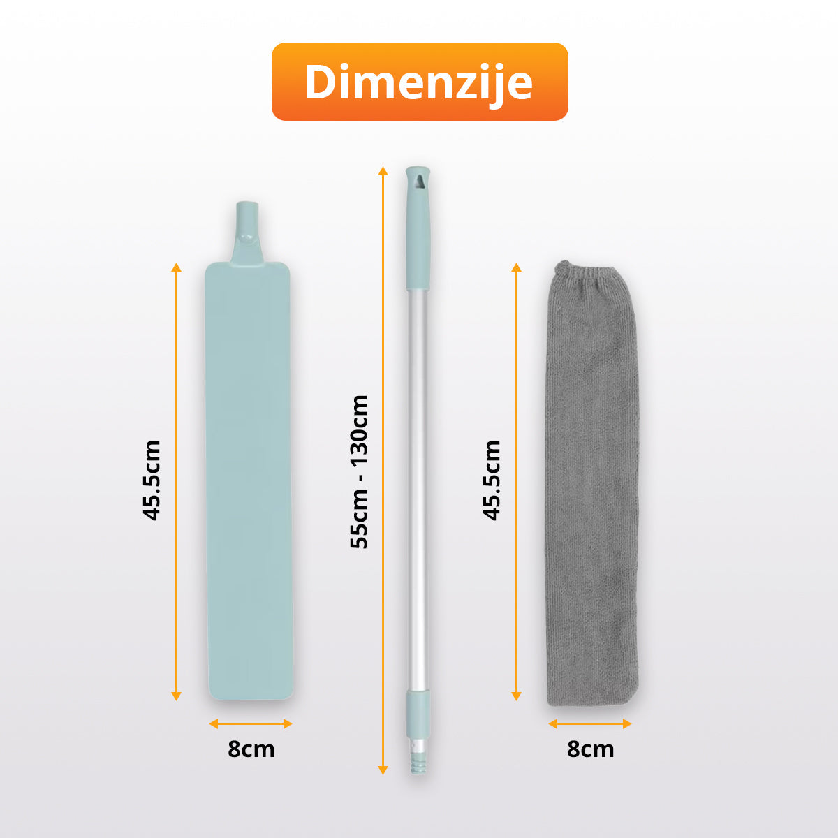 Drška briska se razvlači do 130cm što omogućava da se ne saginjete prilikom čišćenja i da je isto tako skratite kada čistite viseće elemente nameštaja.