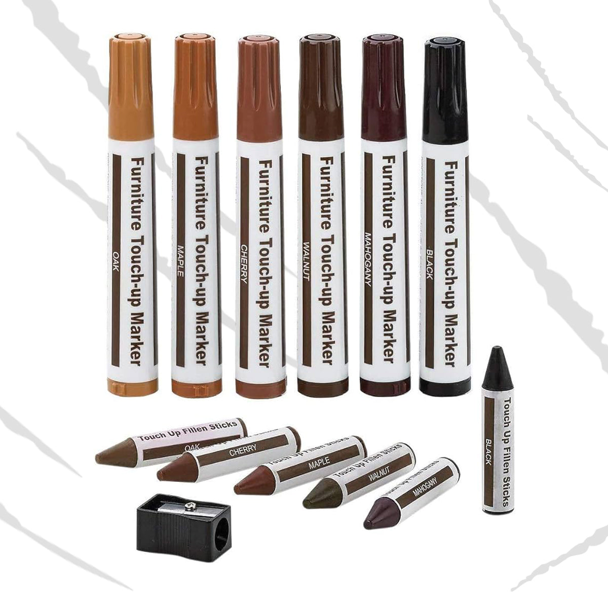 Set sadrži 6 markera i 6 voštanih boja sa kojima možete popraviti najrazličitija oštećenja na drvetu. Markeri će bez problema pokriti sitne ogrebotine koje se i najčešće pojavljuju na nameštaju, dok voštane boje možete koristiti za dublja oštećenja. Voštane boje možete istopiti pomoću upaljača i na taj način ravnomernije popuniti oštećenje.