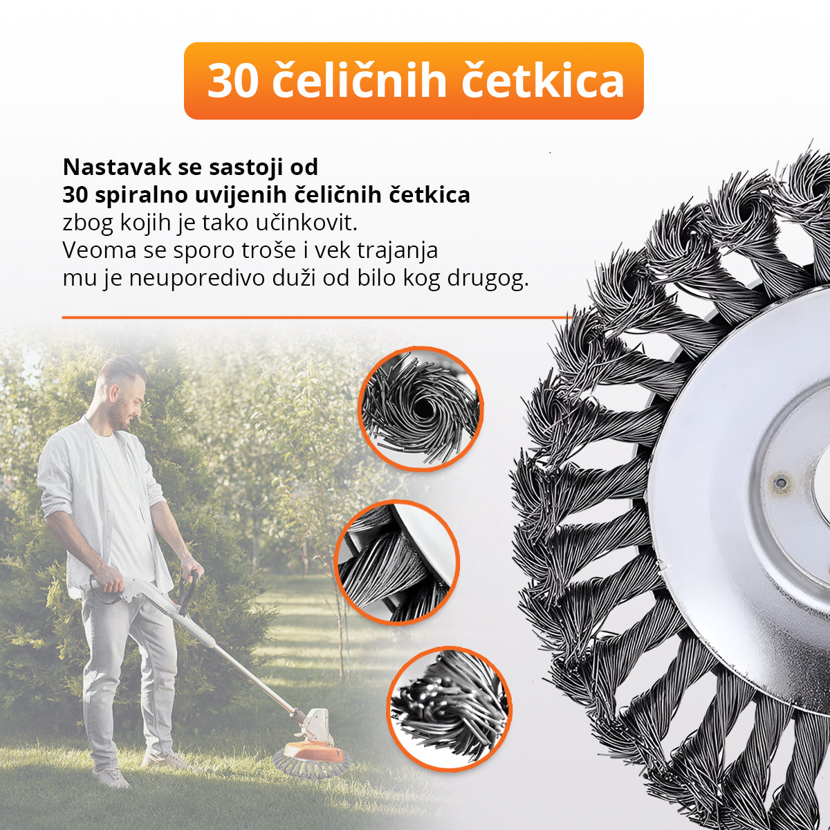 Ovo je jedini nastavak za trimer koji može očistiti bilo koju površinu. Sa lakoćom će ukloniti nepoželjnu mahovinu, ali i dugogodišnje naslage od vode, blata i ostale prljavštine.